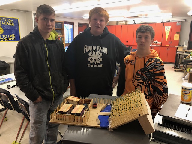 Mr. Jones' Fish and Wildlife Science class at Buhl High School has been learning about wildfire. The students recently finished building model landscapes to illustrate natural and man-made fire breaks, forest conditions, and fuel loads which all influence wildfire. Their models had to include a natural and man-made fire break, two different slopes, and at least one building. Next week they will light their models to see what these different conditions do when a fire comes through.